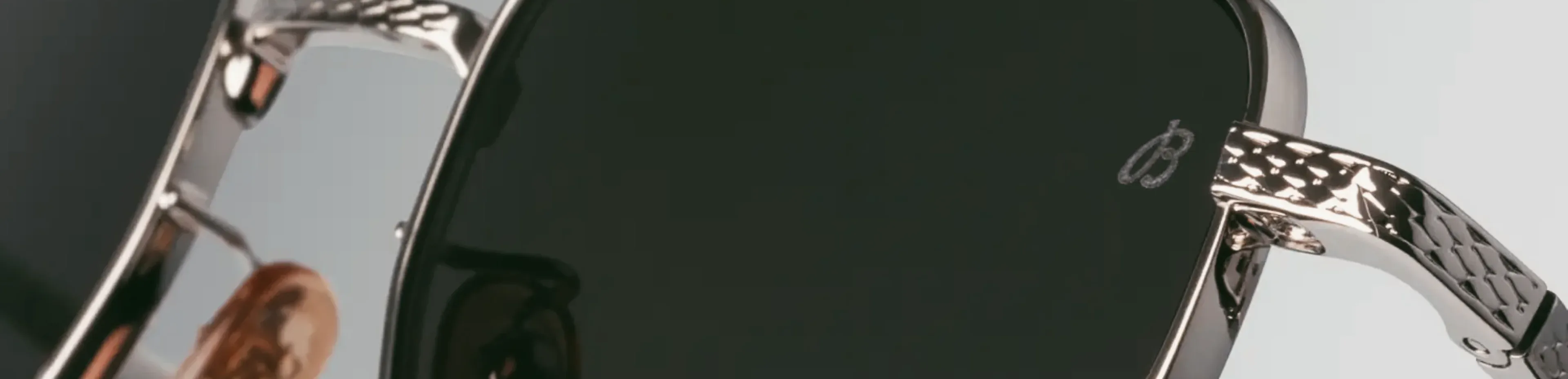 The frames feature luminous arrowhead markers on the temple tips, mirroring the hands found on Breitling’s diving watches. Milanese-style engraving appears throughout the temple pins and bridges – a direct reference to vintage watch straps. The lenses carry a miniature etched Breitling logo, while custom nose pads and hinges bear the distinctive ‘B’ insignia.